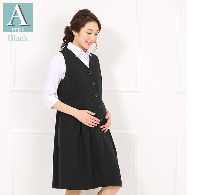 【メール便送料無料】産前産後に使えるマタニティウェア♪授乳口付き事務服・オフィス対応ワンピース ベスト ジャンパースカート 勤・OL・お宮参りの服装の母親(ママ)用にも使えるワンピース 授乳服 妊婦服[M便 1/2]