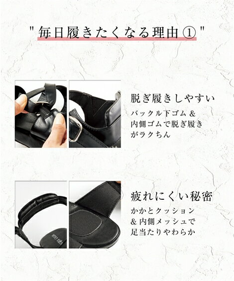 サンダル 大きいサイズ レディース 超軽量クロス ベルト オフィス 制菌・消臭・低反発中敷 ワイズ4E 靴 黒 23.0〜23.5/24.0〜24.5cm ニッセン