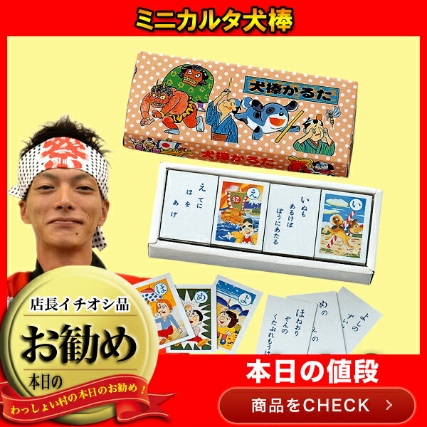 ミニカルタ犬棒/かるた/カルタ/お正月/景品/玩具/販促/なつかし/屋内/お正月/子ども会 子供会/小物/お子様/幼稚園/保育園/小学校/男の子/女の子/おもちゃ お祭り問屋 【サイズ】7.8×19×3cm日本古来からのカードゲームッ!!コンパクトサイズになっても楽しさは変わりません♪