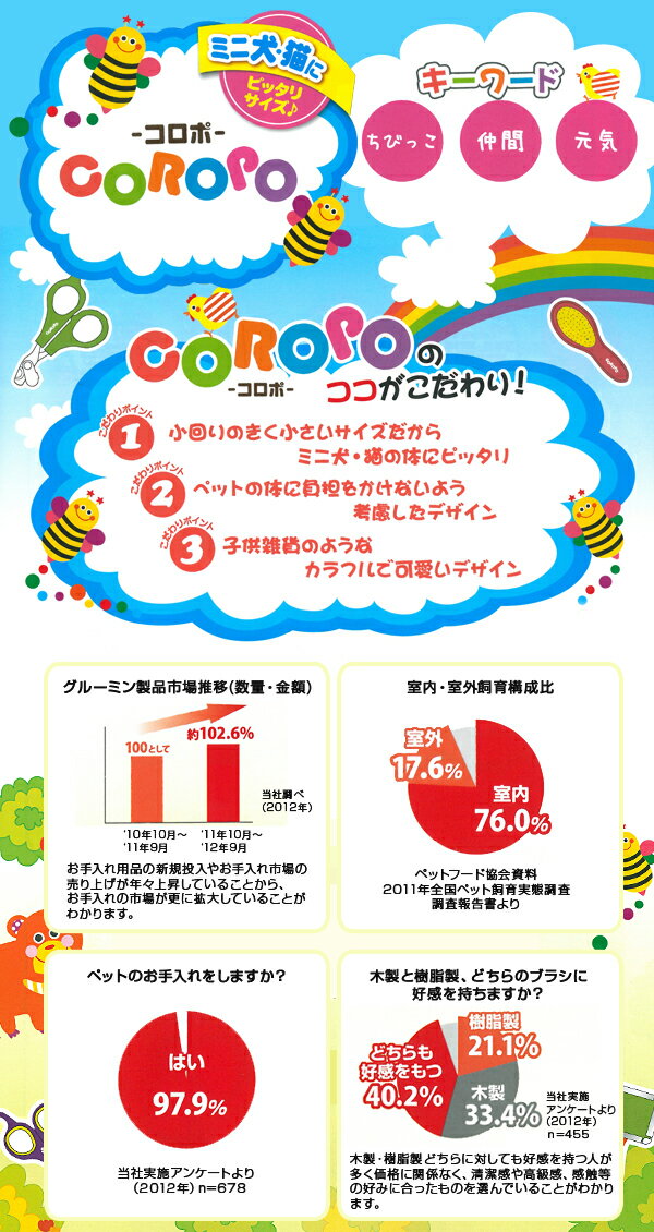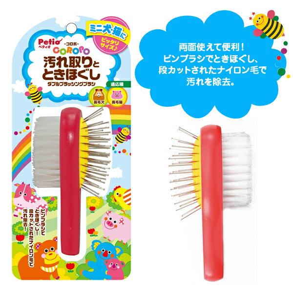 ペティオ COROPO コロポ ダブルブラッシングブラシ 長毛犬・長毛猫用 汚れ取りとときほぐし ミニ犬